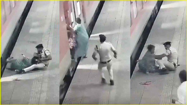वीडियो में देखा जा करता है कि ट्रेन धीरे-धीरे चल रही है। जिसमें से एक महिला प्लेटफॉर्म पर उतरने की कोशिश करती है। खतरे को भापंते हुए वहां पर मौजूद पुलिसकर्मी तुरंत महिला की तरफ दौड़ता है। इसी बीच महिला ट्रेन से नीचे गिर जाती है, जिससे उसके पैर ट्रेन की पटरियों पर चले जाते हैं। महिला पूरी तरह से पटरियों पर जाने ही वाली होती है कि वह पुलिसकर्मी तुरंत उसको बाहर खींच लेता है। यह वीडियो इतना खतरनाक है कि इसे देखकर किसी की भी सांसे अटक सकती है। इस तरह के हादसों से बचने के लिए ही रेलवे हमेशा लोगों को सतर्कता बरतने की सलाह देता है।