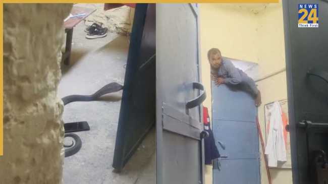 рд╣рд╛рд▓рд╛рдВрдХрд┐ рдХрдорд░реЗ рд╕реЗ рдмрд╛рд╣рд░ рдирд┐рдХрд▓рдиреЗ рдХреЗ рд▓рд┐рдП рдПрдХ рд╣реА рджрд░рд╡рд╛рдЬрд╛ рдерд╛ рдФрд░ рдЙрд╕ рджрд░рд╡рд╛рдЬреЗ рдкрд░ рдЦрддрд░рдирд╛рдХ рдХреЛрдмрд░рд╛ рд╕рд╛рдВрдк рдмреИрдард╛ рд╣реБрдЖ рдерд╛. рд░реЗрд▓рд╡реЗ рдХрд░реНрдордЪрд╛рд░реА рдбрд░рдХрд░ рднрд╛рдЧрд╛ рддреЛ рдЙрд╕рдХрд╛ рдореЛрдмрд╛рдЗрд▓ рдлреЛрди рднреА рдЧрд┐рд░ рдЧрдпрд╛ рдФрд░ рд╢рдЦреНрд╕ рдХрдорд░реЗ рдореЗрдВ рдореМрдЬреВрдж рдмрд╛рдерд░реВрдо рдХреЗ рджрд░рд╡рд╛рдЬреЗ рдкрд░ рдЪрдврд╝рдХрд░ рд▓рдЯрдХ рдЧрдпрд╛.
