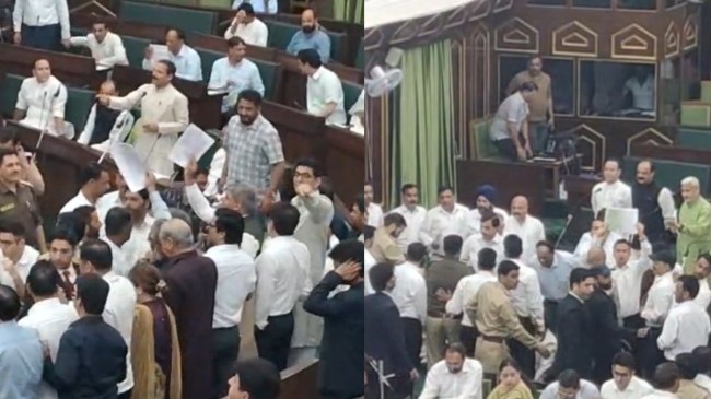 विधानसभा में हंगामे के बीच नेशनल काॅन्फ्रेंस के कई विधायक बेंच पर खड़े हो गए, कुछ विधायकों ने कागज फाड़कर कुर्सी की ओर फेंके। इसके बाद सदन में नारेबाजी की और बिल पर बहस की मांग करने लगे। पीपुल्स काॅन्फ्रेंस के अध्यक्ष और विधायक सज्जान गनी लोन ने कहा कि नेशनल काॅन्फ्रेंस सत्ता या विपक्ष की भूमिका नहीं निभा सकता। अगर नेशनल काॅन्फ्रेंस के अध्यक्ष इस बिल पर बहस करना चाहते हैं और विधानसभा अध्यक्ष सहमत नहीं हैं तो उनके खिलाफ अविश्वास प्रस्ताव लाना चाहिए।