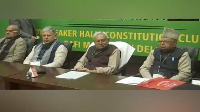 рдирдИ рджрд┐рд▓реНрд▓реА рдХреЗ рдХреЙрдиреНрд╕реНрдЯрд┐рдЯреНрдпреВрд╢рди рдХреНрд▓рдм рдореЗрдВ рдЬрдирддрд╛ рджрд▓ рдпреВрдирд╛рдЗрдЯреЗрдб рдХреА рд░рд╛рд╖реНрдЯреНрд░реАрдп рдХрд╛рд░реНрдпрдХрд╛рд░рд┐рдгреА рдмреИрдардХ рд╣реБрдИред рдЗрд╕ рдмреИрдардХ рдореЗрдВ рдмрд┐рд╣рд╛рд░ рдХреЗ рдореБрдЦреНрдпрдордВрддреНрд░реА рдиреАрддреАрд╢ рдХреБрдорд╛рд░, рдЬреЗрдбреАрдпреВ рдХреЗ рд░рд╛рд╖реНрдЯреНрд░реАрдп рдЕрдзреНрдпрдХреНрд╖ рд░рд╛рдЬреАрд╡ рд░рдВрдЬрди (рд▓рд▓рди) рд╕рд┐рдВрд╣, рдХреЗрд╕реА рддреНрдпрд╛рдЧреА рд╕рдореЗрдд рдкрд╛рд░реНрдЯреА рдХреЗ рдХрдИ рджрд┐рдЧреНрдЧрдЬ рдиреЗрддрд╛ рд╢рд╛рдорд┐рд▓ рд╣реБрдПред рдЗрд╕ рдореАрдЯрд┐рдВрдЧ рдХреЗ рд▓рд┐рдП рдиреАрддреАрд╢ рдХреБрдорд╛рд░ рдФрд░ рд▓рд▓рди рд╕рд┐рдВрд╣ рдПрдХ рдЧрд╛рдбрд╝реА рд╕реЗ рд╕рд╛рде-рд╕рд╛рде рдЖрдП рдереЗред рдореАрдЯрд┐рдВрдЧ рдореЗрдВ рднреА рдиреАрддреАрд╢ рдХреБрдорд╛рд░ рдФрд░ рд▓рд▓рди рд╕рд┐рдВрд╣ рдХреА рдХреБрд░реНрд╕реА рдЕрдЧрд▓-рдмрдЧрд▓ рд▓рдЧреА рдереА рдФрд░ рджреЛрдиреЛрдВ рдПрдХ рд╕рд╛рде рдмреИрдареЗ рдереЗред