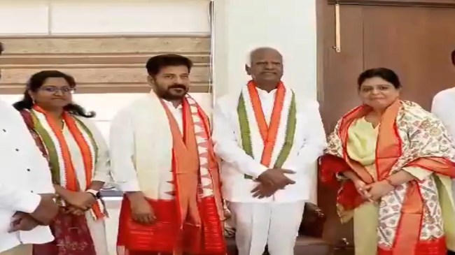 #WATCH | Hyderabad, Telangana: BRS MLA Kadiyam Srihari and his daughter Kadiyam Kavya join Congress in the presence of Telangana CM Revanth Reddy. pic.twitter.com/C1P1Oe2jEJ