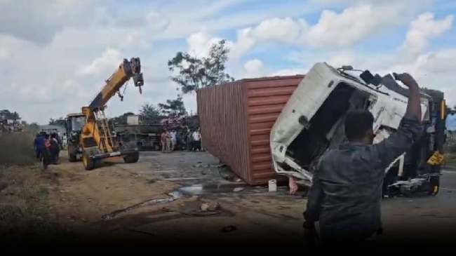 बेंगलुरु पुलिस ने हादसे के बाद सोशल मीडिया पर नई ट्रैफिक एडवाइजरी भी जारी की है। पुलिस ने लिखा है कि नेलमांगला में बेंगलुरु के पास एक कंटेनर कार और बाइक पर पलट गया। जिसके बाद यहां ट्रैफिक काफी स्लो चल रहा है। बताया जा रहा है कि कार और बाइक बुरी तरह क्षतिग्रस्त हुए हैं। एसयूवी में दो बच्चे भी सवार थे। हादसे के बाद हाईवे पर 3 किलोमीटर लंबा जाम लग गया। पुलिस को कंटेनर हटाने और शवों को निकालने के लिए काफी मशक्कत करनी पड़ी। पुलिस ने लोगों से अपील की है कि यातायात नियमों का पालन करते हुए हाईवे पर निर्धारित स्पीड से चलें। ट्रक और कार दोनों बेंगलुरु से तुमकुरु की ओर जा रहे थे। बताया जा रहा है कि शनिवार सुबह 11 बजे एक्सीडेंट हुआ।