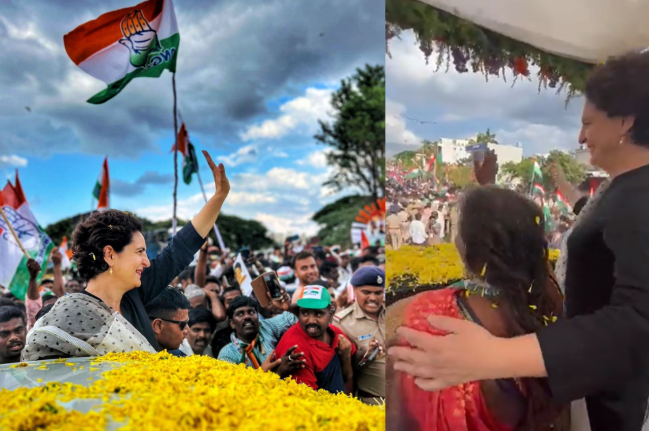 Karnataka Election: कांग्रेस महासचिव प्रियंका गांधी कर्नाटक के दौरे पर हैं। मंगलवार को उन्होंने चिंतामणि में रोड शो किया। इस दौरान प्रियंका गांधी का एक अलग अंदाज दिखा। उनकी नजर भीड़ में खड़ी एक बुजुर्ग महिला पर पड़ी। उसने अपने गले में कांग्रेस की पट्टिका डाल रखी थी। प्रियंका को देख उसने हाथ हिलाकर उनका अभिवादन किया। यह देखकर प्रियंका गांधी अपने प्रचार रथ से उतरकर भीड़ में शामिल उस महिला तक पहुंचीं। उन्होंने महिला को अपने चुनावी रथ पर सवार किया। प्रियंका गांधी के साथ महिला ने कांग्रेस के लिए वोट मांगा। बताया जा रहा है कि महिला स्वच्छता कार्यकर्ता होने के साथ कांग्रेस की सपोर्टर है।