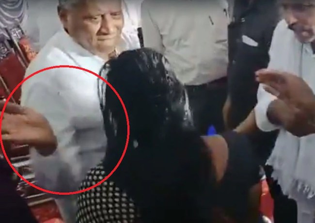 рд╡рд╛рдпрд░рд▓ рд╡реАрдбрд┐рдпреЛ рдореЗрдВ рдердкреНрдкрдбрд╝ рдХреЗ рдмрд╛рдж рдорд╣рд┐рд▓рд╛ рдордВрддреНрд░реА рдХреЗ рдкреИрд░ рдЫреВрддреА рдирдЬрд░ рдЖ рд░рд╣реА рд╣реИред рдХрд╣рд╛ рдЬрд╛ рд░рд╣рд╛ рд╣реИ рдХрд┐ рдордВрддреНрд░реА рдиреЗ рдорд╣рд┐рд▓рд╛ рд╕реЗ рдЕрдкрдиреЗ рд╡реНрдпрд╡рд╣рд╛рд░ рдХреЗ рд▓рд┐рдП рдЦреЗрдж рдЬрддрд╛рдпрд╛ред