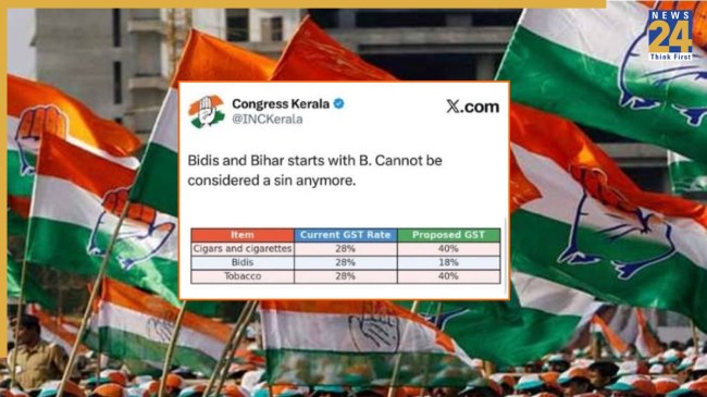 рдХрд╛рдВрдЧреНрд░реЗрд╕ рдХреА рдХреЗрд░рд▓ рдЗрдХрд╛рдИ рдХреЗ рдПрдХреНрд╕ рдкреНрд▓реЗрдЯрдлреЙрд░реНрдо рдХреЗ рдкреЛрд╕реНрдЯ рдкрд░ рд╕рдлрд╛рдИ рджреЗрддреЗ рд╣реБрдП рдХрд╣рд╛ рдХрд┐ “рдмреАрдбрд╝реА рдФрд░ рдмрд┐рд╣рд╛рд░, рдмреА рд╕реЗ рд╢реБрд░реВ рд╣реЛрддреЗ рд╣реИрдВред рдЕрдм рдЗрд╕реЗ рдкрд╛рдк рдирд╣реАрдВ рдорд╛рдирд╛ рдЬрд╛ рд╕рдХрддрд╛ред” рдХрд╣рд╛ рдХрд┐ рдЗрд╕ рдкреЛрд╕реНрдЯ рдХреЗ рд╕рд╛рде рдореМрдЬреВрджрд╛ рдФрд░ рдкреНрд░рд╕реНрддрд╛рд╡рд┐рдд рдЬреАрдПрд╕рдЯреА рджрд░реЛрдВ рдХреА рддреБрд▓рдирд╛ рдХрд░рдиреЗ рд╡рд╛рд▓рд╛ рдПрдХ рдЧреНрд░рд╛рдлрд┐рдХ рдерд╛, рдЬрд┐рд╕рдореЗрдВ рдмреАрдбрд╝реА рдкрд░ рдХрд░ 28% рд╕реЗ рдШрдЯрд╛рдХрд░ 18% рдФрд░ рд╕рд┐рдЧрд░реЗрдЯ рдкрд░ рдХрд░ 28% рд╕реЗ рдмрдврд╝рд╛рдХрд░ 40% рджрд┐рдЦрд╛рдпрд╛ рдЧрдпрд╛ рдерд╛ред рдХрд╣рд╛ рдХрд┐ рдпрд╣ рдкреЛрд╕реНрдЯ рддрдВрдмрд╛рдХреВ рдЙрддреНрдкрд╛рджреЛрдВ рдкрд░ рдХреЗрдВрджреНрд░ рдХреА рдЬреАрдПрд╕рдЯреА рдиреАрддрд┐ рдХреА рдЖрд▓реЛрдЪрдирд╛ рдХрд░рдиреЗ рдХреЗ рд▓рд┐рдП рдереАред
