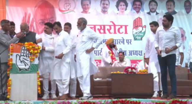 Mallikarjun Kharge News: जम्मू और कश्मीर के जसरोटा में रैली को संबोधित करते हुए कांग्रेस अध्यक्ष मल्लिकार्जुन खरगे की तबीयत बिगड़ गई। खरगे मंच पर खड़े होकर भाषण दे रहे थे कि अचानक उन्हें चक्कर आने जैसा महसूस होने लगा। मंच पर खड़े-खड़े ही उन्होंने खुद को संभाला। पार्टी के नेताओं ने उन्हें सहारा दिया और फिर उन्हें सोफे पर बिठा दिया है। कुछ लोग हवा करने लगे, कुछ ने उनके जूते खोले। हालत स्थिर होने के बाद खरगे ने कहा कि मैं तब तक नहीं मरूंगा, जब तक कि मोदी को सत्ता से बाहर नहीं कर देता।