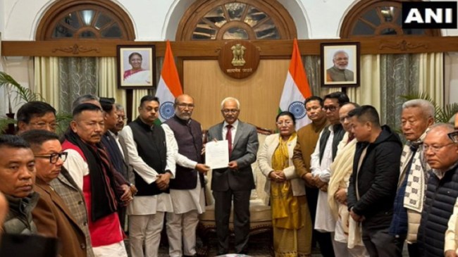 Manipur CM N Biren Singh hands over the letter of resignation from the post of Chief Minister to Governor Ajay Kumar Bhalla at the Raj Bhavan in Imphal. pic.twitter.com/zcfGNVdPPo