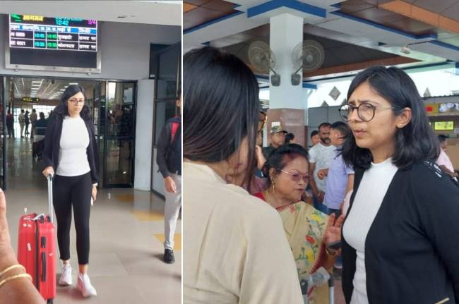 Manipur | DCW chief Swati Maliwal reaches Imphal airport. pic.twitter.com/ILFQooaXt8