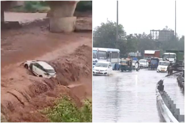 #WATCH | Haryana: Delhi-Jaipur highway (NH 48) near Narsingh Pur Chowk inundated due to waterlogging after heavy rainfall in Gurugram. pic.twitter.com/uuRDED1Ch3