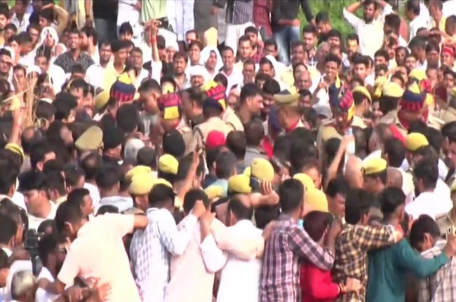 मुलायम सिंह यादव के अंतिम संस्कार में रक्षा मंत्री राजनाथ सिंह समेत कई वीवीआईपी मौजूद। नुमाइश ग्राउंड में उमड़ी लाखों की भीड़।