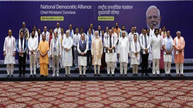 рдкреНрд░рдзрд╛рдирдордВрддреНрд░реА рдирд░реЗрдВрджреНрд░ рдореЛрджреА рдХреА рдЕрдзреНрдпрдХреНрд╖рддрд╛ рдореЗрдВ рд░рд╡рд┐рд╡рд╛рд░ рдХреЛ рдПрдирдбреАрдП рд╢рд╛рд╕рд┐рдд рд░рд╛рдЬреНрдпреЛрдВ рдХреЗ рдореБрдЦреНрдпрдордВрддреНрд░рд┐рдпреЛрдВ рдФрд░ рдЙрдкрдореБрдЦреНрдпрдордВрддреНрд░рд┐рдпреЛрдВ рдХреА рд╡рд┐рд╢реЗрд╖ рдмреИрдардХ рдЖрдпреЛрдЬрд┐рдд рдХреА рдЧрдИред рдЗрд╕ рдореБрдЦреНрдпрдордВрддреНрд░реА рдкрд░рд┐рд╖рдж рдХреА рдмреИрдардХ рдореЗрдВ рд░рд╛рд╖реНрдЯреНрд░реАрдп рд╕реБрд░рдХреНрд╖рд╛, рд╕реБрд╢рд╛рд╕рди, рд╕рд╛рдорд╛рдЬрд┐рдХ рдиреНрдпрд╛рдп, рд╡рд┐рдХрд╛рд╕ рдФрд░ рдирдХреНрд╕рд▓ рдЙрдиреНрдореВрд▓рди рдЬреИрд╕реЗ рдорд╣рддреНрд╡рдкреВрд░реНрдг рд╡рд┐рд╖рдпреЛрдВ рдкрд░ рд╡реНрдпрд╛рдкрдХ рд╡рд┐рдЪрд╛рд░-рд╡рд┐рдорд░реНрд╢ рд╣реБрдЖред рдмреИрдардХ рдореЗрдВ рджреЛ рдкреНрд░рдореБрдЦ рдкреНрд░рд╕реНрддрд╛рд╡ рдкрд╛рд░рд┐рдд рдХрд┐рдП рдЧрдП, рдЬрд┐рд╕рдореЗрдВ тАШрдСрдкрд░реЗрд╢рди рд╕рд┐рдВрджреВрд░тАЩ рдХреЛ рд▓реЗрдХрд░ рд╕реИрдиреНрдп рдкрд░рд╛рдХреНрд░рдо рдХрд╛ рдЕрднрд┐рдирдВрджрди рдФрд░ рдЖрдЧрд╛рдореА рдЬрдирдЧрдгрдирд╛ рдореЗрдВ рдЬрд╛рддрд┐рдЧрдд рдЖрдВрдХрдбрд╝реЛрдВ рдХреЛ рд╢рд╛рдорд┐рд▓ рдХрд░рдиреЗ рдХреА рд╕рд░рд╛рд╣рдирд╛ рд╢рд╛рдорд┐рд▓ рд╣реИред