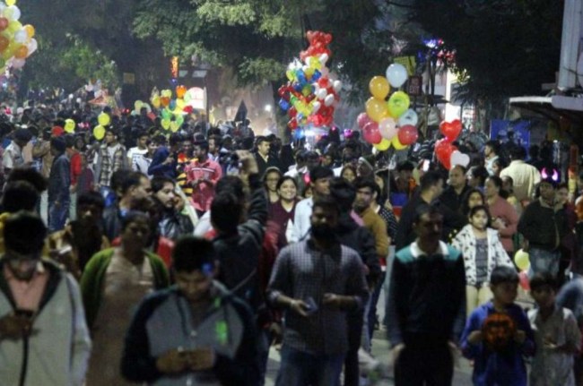 मनाली में नए साल का जश्न मनाने के लिए उमड़ा हुजूम। यहां सड़कों पर पर बड़ी संख्या में लोग नजर आए।