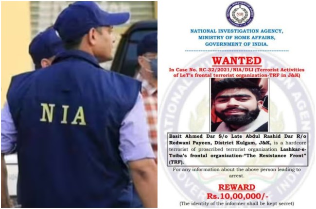 Basit Ahmed Dar: राष्ट्रीय जांच एजेंसी (NIA) ने द रेजिस्टेंस फ्रंट (TRF) के हार्डकोर आतंकवादी बासित अहमद डार पर 10 लाख रुपए का इनाम घोषित किया है। बासित जम्मू-कश्मीर में कुलगाम के रेडवनी पाईन का रहने वाला है। वहीं टीआरएफ प्रतिबंधित आतंकी संगठन लश्कर-ए-तैयबा के फ्रंटल संगठन है। एनआईए ने कहा कि बासित अहमद के बारे में सूचना देने वाले और उसे गिरफ्तार करवाने वाले को इनाम दिया जाएगा।