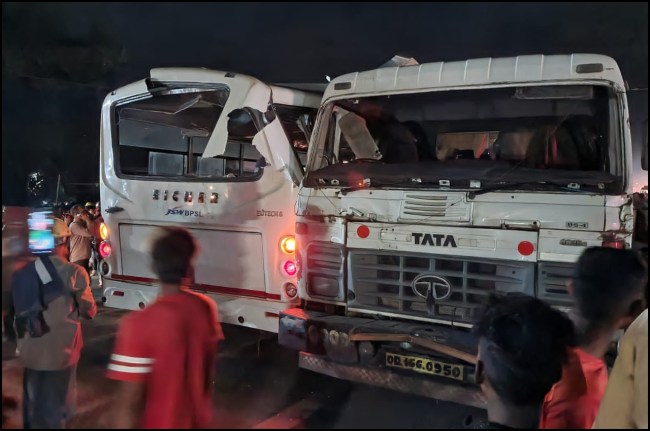 झारसुगुडा के पुलिस उपाधीक्षक एन महापात्रा ने समाचार एजेंसी एएनआई को जानकारी देते हुए बताया कि “झारसुगुडा में एक कंपनी के कर्मचारियों को ले जा रही एक बस के ट्रक से टकरा जाने से 6 की मौत हो गई, जबकि 20 से अधिक घायल हो गए। ज्यादातर कर्मचारी गंभीर रूप से घायल हैं। 10 लोगों को बुर्ला, संबलपुर के एक अस्पताल में रेफर किया गया है, जबकि 14 का यहां इलाज चल रहा है।”