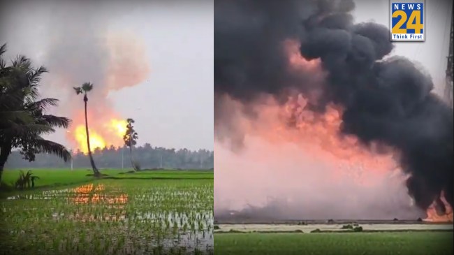 рдЖрдВрдзреНрд░ рдкреНрд░рджреЗрд╢ рдХреЗ рдХреЛрдирд╕реАрдорд╛ рдЬрд┐рд▓реЗ рдореЗрдВ рдУрдПрдирдЬреАрд╕реА (ONGC) рдХреЗ рдПрдХ рддреЗрд▓ рдХреБрдПрдВ рдореЗрдВ рдЬрдмрд░рджрд╕реНрдд рдЧреИрд╕ рд░рд┐рд╕рд╛рд╡ рдХреЗ рдмрд╛рдж рднреАрд╖рдг рдЖрдЧ рд▓рдЧ рдЧрдИ. рдпрд╣ рд╣рд╛рджрд╕рд╛ рд░рд╛рдЬреЛрд▓ рдЗрд▓рд╛рдХреЗ рдХреЗ рдЗрд░реБрд╕реБрдордВрдбрд╛ рдЧрд╛рдВрд╡ рдореЗрдВ рд╣реБрдЖ рд╣реИ. рд░рд┐рдкреЗрдпрд░рд┐рдВрдЧ рдХреЗ рджреМрд░рд╛рди рд╣реБрдП рдПрдХ рдзрдорд╛рдХреЗ рд╕реЗ рдкреВрд░рд╛ рдЧрд╛рдВрд╡ рд╣рд┐рд▓ рдЧрдпрд╛. рдмреНрд▓рд╛рд╕реНрдЯ рдХреЗ рдмрд╛рдж рдЖрд╕рдорд╛рди рдореЗрдВ рд╕реИрдХрдбрд╝реЛрдВ рдлреАрдЯ рдКрдкрд░ рдЙрдарддреА рдЖрдЧ рдХреА рд▓рдкрдЯреЛрдВ рдФрд░ рдзреБрдПрдВ рдХреЗ рдЧреБрдмрд╛рд░ рдХреЛ рджреЗрдЦрдХрд░ рдЧреНрд░рд╛рдореАрдгреЛрдВ рдореЗрдВ рдЪреАрдЦ рдкреБрдХрд╛рд░ рдордЪ рдЧрдИ.