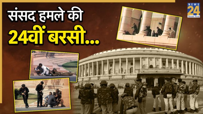 Parliament Attack 24th Anniversary: साल 2001, तारीख 13 दिसंबर। भारत में लोकतंत्र के सबसे बड़े मंदिर यानी संसद में जनता के लिए शीतकालीन सत्र चल रह था। संसद में महिलाओं के हितों के लिए महिला आरक्षण बिल पर बहस चल रही थी। सत्ता पक्ष और विपक्ष में जोरदार हंगामा मचा था। देश की जनता के लिए संसद का शोर कुछ ही देर में गोलियों के शोर में बदल गया। 5 आतंकी एके-47 लेकर संसद परिसर में दाखिल हो चुके थे। जानकारी के अनुसार, तत्कालीन प्रधानमंत्री अटल बिहारी वाजपेई और नेता प्रतिपक्ष सोनिया गांधी कुछ देर पहले ही सदन से रवाना हुईं थी। सदन में तब के गृह मंत्री लाल कृष्ण आडवाणी बिल पर भाषण दे रहे थे।