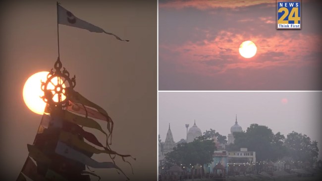 वहीं, उत्तर प्रदेशे के अयोध्या में सरयू घाट पर 2025 का अंतिम सूर्यास्त देखा गया.