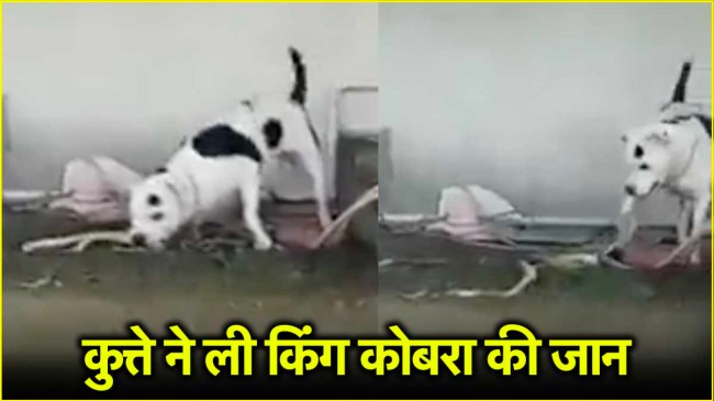 Pitbull attack King Cobra: एक कुत्ते ने किंग कोबरा से कुछ बच्चों की जान बचा ली। किंग कोबरा तेजी से बच्चों की तरफ बढ़ रहा था। मगर इसी बीच कुत्ता बीच में कूद पड़ा और उसने किंग कोबरा को लहूलुहान कर दिया। कुत्ते और किंग कोबरा की लड़ाई का ये वीडियो सोशल मीडिया पर ट्रेंड कर रहा है। इस वीडियो को देखने के बाद हर किसी के होश उड़ गए हैं। यह मामला उत्तर प्रदेश के झांसी में मौजूद शिव गणेश कॉलोनी का है।