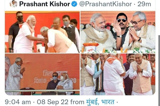 рдкреНрд░рд╢рд╛рдВрдд рдХрд┐рд╢реЛрд░ рдиреЗ рдЯреНрд╡рд┐рдЯрд░ рдкрд░ рдЪрд╛рд░ рддрд╕реНрд╡реАрд░реЛрдВ рдХреЛ рдЬреЛрдбрд╝рдХрд░ рдПрдХ рдкреЛрд╕реНрдЯ рд╢реЗрдпрд░ рдХрд┐рдпрд╛ рдерд╛, рдЬрд┐рд╕рдореЗрдВ рдиреАрддреАрд╢ рдХреБрдорд╛рд░ рд╣рд╛рде рдЬреЛрдбрд╝рдХрд░ рдкреАрдПрдо рдореЛрджреА рдХрд╛ рдЕрднрд┐рд╡рд╛рджрди рдХрд░ рд░рд╣реЗ рдереЗ рдФрд░ рдЙрдирдХреЗ рдЪреЗрд╣рд░реЗ рдкрд░ рдореБрд╕реНрдХрд╛рди рдереАред рд╣рд╛рд▓рд╛рдВрдХрд┐ рдЗрди рддрд╕реНрд╡реАрд░реЛрдВ рдХреЗ рд╕рд╛рде рдкреНрд░рд╢рд╛рдВрдд рдХрд┐рд╢реЛрд░ рдиреЗ рдХреЛрдИ рдХреИрдкреНрд╢рди рдирд╣реАрдВ рдбрд╛рд▓рд╛ рдерд╛ред┬ард╣рд╛рд▓рд╛рдВрдХрд┐, рдХреБрдЫ рджреЗрд░ рдмрд╛рдж рдкреНрд░рд╢рд╛рдВрдд рдХрд┐рд╢реЛрд░ рдиреЗ рдЯреНрд╡реАрдЯ рдХреЛ рд╣рдЯрд╛ рджрд┐рдпрд╛ред