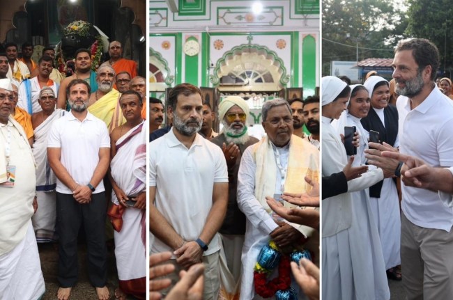 वायनाड के सांसद ने भारत जोड़ो यात्रा के दौरान कर्नाटक के मैसूर में मस्जिद-ए-आज़म का दौरा किया। इसके बाद राहुल गांधी शहर में स्थित सेंट फिलोमेना चर्च भी पहुंचे। मंदिर, मस्जिद और चर्च में मौजूद लोगों से राहुल गांधी ने काफी देर तक बातचीत भी की।