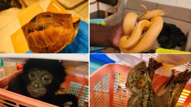 मीडिया रिपोर्ट के अनुसार, आरोपी की पहचान मोहम्मद मीरा सरधराली के रूप में हुई है, जिससे 22 वन्यजीव बरामद हुए हैं। इनमें एक इंडोनेशिया और मलेशिया में पाया जाने वाला सियामांग गिब्बन प्रजाति का बंदर, 2 सुंडा उड़ने वाले लेमर्स, एक लाल पैर वाला कछुआ, 5 इंडो चेनी बॉक्स कछुए, 9 कछुए 4 आंखों वाले, एक कील्ड बॉक्स कछुआ, 2 हरे रंग के अजगर और 1 सफेद रंग का अजगर, भारतीय कछुआ, ट्राईकैरिनेट पहाड़ी कछुआ, काला तालाब कछुआ, स्टार कछुआ और रॉयल बॉल अजगर शामिल हैं।