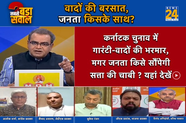 Sabse Bada Sawal, 01 May 2023: नमस्कार, मैं हूं संदीप चौधरी। आज सबसे बड़ा सवाल मैं कर्नाटक की राजधानी बेंगलुरु से कर रहा हूं। यहां जबरदस्त पानी बरस रहा है। अपने को होटल के कमरे तक महदूद पा रहा हूं। कर्नाटक में एक और भी बरसात हो रही है। वह है वादों की बरसात। पिटारा खोला जा रहा है। वोटरों को लुभाने के लिए। सबको कुछ न कुछ देने की कोशिश की जा रही है।