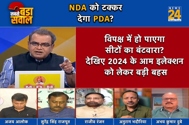 Sabse Bada Sawal, 18 June 2023: नमस्कार, मैं हूं संदीप चौधरी। आज सबसे बड़ा सवाल संडे स्पेशल में मैं विशुद्ध राजनीति की बात करने वाला हूं। बात होगी कि एनडीए की, पीडीए की, विपक्षी गठबंधन की और सीटों के बंटवारे की। राजनीति का पहिया अब तेजी से घूमता दिख रहा है। पुराने दोस्तों को तलाशा जा रहा है, नए रिश्ते भी बनाए जा रहे हैं। कागज पर सीटों के गणित का आंकलन किया जा रहा है।