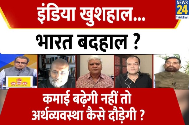 рдЕрдм рдЖрд░рдмреАрдЖрдИ рдХрд╛ рдЖрдВрдХрдбрд╝рд╛ рджреЗрдЦрд┐рдПред 2014-15 рд╕реЗ 21-22 рдкрд┐рдЫрд▓реЗ рдЖрда рд╕рд╛рд▓реЛрдВ рдореЗрдВ рдЦреЗрддрд┐рд╣рд░ рдордЬрджреВрд░реА рдореЗрдВ 0.9 рдлреАрд╕рджреА рдХрд╛ рдЗрдЬрд╛рдлрд╛ рд╣реБрдЖ рд╣реИред рдирд┐рд░реНрдорд╛рдг рдХреЗ рдХреНрд╖реЗрддреНрд░ рдореЗрдВ рдЬреЛ рд▓рдЧрд╛ рд╣реИ рдЙрд╕рдореЗрдВ 0.2 рдлреАрд╕рджреА рдФрд░ рдЧреИрд░ рдЦреЗрддрд┐рд╣рд░ рдордЬрджреВрд░ рдХреА рдордЬрджреВрд░реА рдореЗрдВ 0.3 рдлреАрд╕рджреА рдХрд╛ рдЗрдЬрд╛рдлрд╛ рд╣реБрдЖ рд╣реИред рдорддрд▓рдм рдЬрд╣рд╛рдВ рдереЗ рд╡рд╣реАрдВ рдЦрдбрд╝реЗ рд╣реИрдВред рдорд╣рдВрдЧрд╛рдИ рд╣рд░ рд╕рд╛рд▓ рдмрдврд╝ рд░рд╣реА рд╣реИ, рдХрдорд╛рдИ рд▓рдЧрд╛рддрд╛рд░ рдШрдЯ рд░рд╣реА рд╣реИред рдЬреЛ рдХреЛрд░реЛрдирд╛рдХрд╛рд▓ рдореЗрдВ рдордирд░реЗрдЧрд╛ рдореЗрдВ 42 рджрд┐рди рдХрд╛рдо рдорд┐рд▓ рд░рд╣рд╛ рд╣реИ, рдЬрдмрдХрд┐ рдорд┐рд▓рдирд╛ 100 рджрд┐рди рдЪрд╛рд╣рд┐рдП рдерд╛ред рддреЛ рдЖрдЬ рдХрд╛ рд╕рд╡рд╛рд▓ рдпрд╣реА рд╣реИ рдХрд┐ рдЗрдВрдбрд┐рдпрд╛ рдЦреБрд╢рд╣рд╛рд▓…рднрд╛рд░рдд рдмрджрд╣рд╛рд▓, рдХрдорд╛рдИ рдмрдврд╝реЗрдЧреА рдирд╣реАрдВ рддреЛ рдЕрд░реНрдерд╡реНрдпрд╡рд╕реНрдерд╛ рдХреИрд╕реЗ рджреМрдбрд╝реЗрдЧреА? рджреЗрдЦрд┐рдП рдмрдбрд╝реА рдмрд╣рд╕