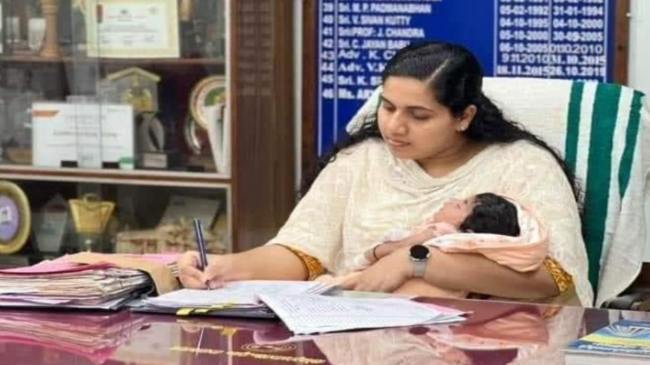 Mayor Arya Rajendran Work With Her Newborn Baby: तिरुवनंतपुरम की मेयर आर्या राजेंद्रन ने कुछ समय पहले देश में सबसे कम उम्र की मेयर होने पर सुर्खियां बंटोरी थीं। अब एक बार फिर से मेयर आर्या सोशल मीडिया पर छाई हुई हैं। उनका एक फोटो सोशल मीडिया पर वायरल हो रहा है, जिसमें वे अपने नवजात बच्चे के साथ मेयर की कुर्सी पर बैठकर काम करती दिखाई दे रही हैं।