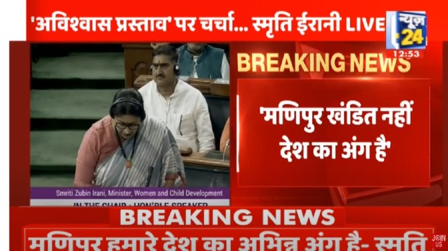 स्मृति ईरानी का कहना है, ‘संसदीय कार्य मंत्री प्रह्लाद जोशी, केंद्रीय गृह मंत्री अमित शाह और रक्षा मंत्री राजनाथ सिंह ने बार-बार कहा कि सरकार मणिपुर मुद्दे पर बहस के लिए तैयार है। विपक्ष इससे भाग गया, हम नहीं गए।’