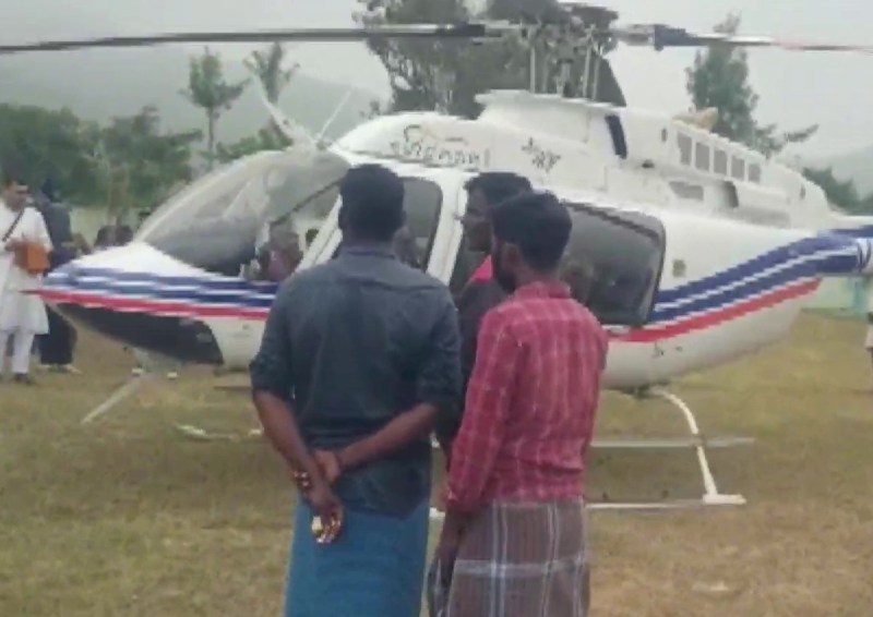 Tamil Nadu | A helicopter carrying Art of Living's Sri Sri Ravi Shankar and four others made an emergency landing due to bad weather at Sathyamangalam in Erode today morning. All passengers safe. The helicopter took off after 50 minutes once the weather cleared. pic.twitter.com/KiQJ30irUn