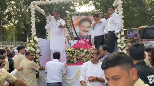 Funeral procession of Subrata Roy Sahara being taken out from Sahara City, Lucknow to Baikunth Dham cremation ghat for final rites. pic.twitter.com/E4BIRwsUKq