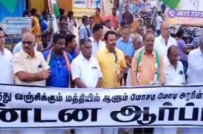 #WATCH | Tamil Nadu: "When we will come to power, we will chop off the tongue of the judge who delivered the verdict to send our leader Rahul Gandhi to jail," said Manikandan, Congress Dindigul district president during a protest organised by the party on April 6, 2023 pic.twitter.com/a2cO2jt4fm