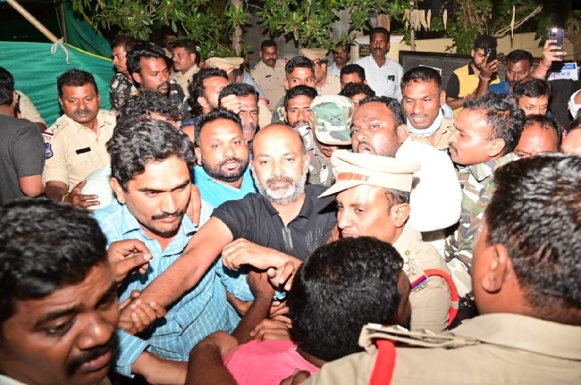 समाचार एजेंसी एएनआई के मुताबिक, पुलिस की एक टीम सांसद के करीमनगर स्थित आवास पर पहुंची जिसके बाद तनावपूर्ण माहौल बन गया। बंदी संजय के समर्थकों और पार्टी कार्यकर्ताओं ने पुलिस को रोकने की कोशिश की। कार्यकर्ताओं ने बताया कि पुलिस ने बंदी संजय को घसीटकर पुलिस वैन के अंदर बैठाया। फिर उन्हें नलगौंडा जिले के बोम्माला रामाराम पुलिस स्टेशन ले जाया गया।