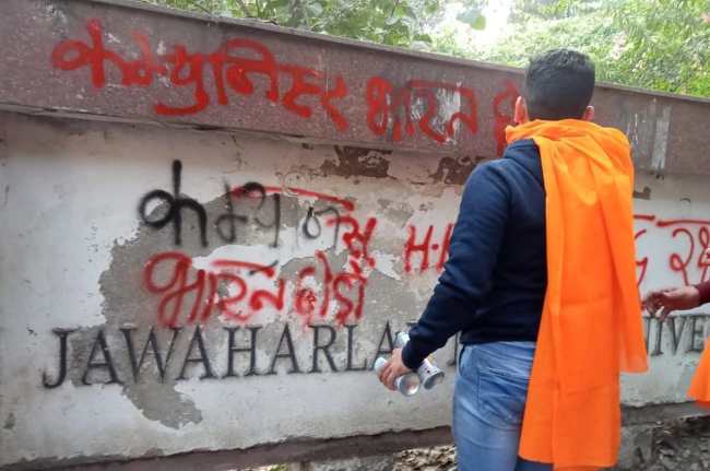 JNU के दीवारों पर नारों का भरमार