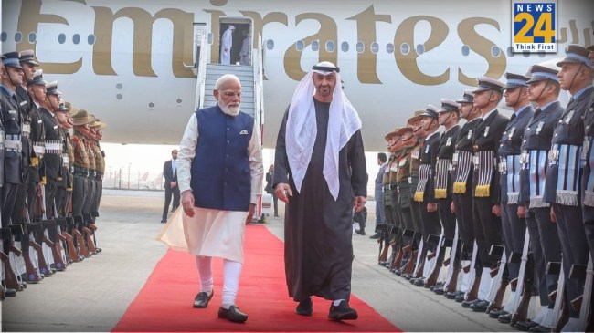संयुक्त अरब अमीरात के राष्ट्रपति शेख मोहम्मद बिन जायद अल नाहयान सोमवार को एक ऐसी यात्रा पर भारत आए जिसकी चर्चा पूरी दुनिया में हो रही है. विदेश मंत्रालय के अनुसार यूएई के राष्ट्रपति मात्र 1 घंटा 45 मिनट के लिए भारत पहुंचे थे. इतने कम समय के लिए किसी बड़े देश के राष्ट्राध्यक्ष का आना काफी हैरान करने वाला है. अपनी इस संक्षिप्त यात्रा के दौरान उन्होंने प्रधानमंत्री नरेंद्र मोदी से मुलाकात की और महत्वपूर्ण विषयों पर चर्चा की. पीएम मोदी के विशेष निमंत्रण पर भारत आए. नाहयान की यह यात्रा दिखाती है कि दोनों नेताओं के बीच आपसी विश्वास और दोस्ती कितनी गहरी हो चुकी है. औपचारिकताओं से ऊपर उठकर वे कम समय में भी संवाद को प्राथमिकता दे रहे हैं.