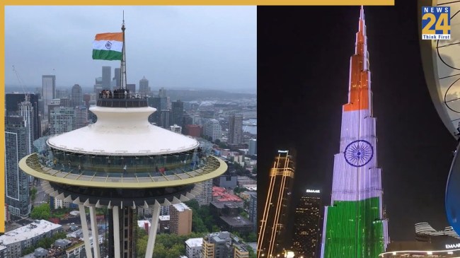 79th Independence day: भारत के 79वें स्वतंत्रता पर तिरंगा केवल भारत में नहीं फहराया, बल्कि अमेरिका, यूएई जैसे पॉवरफुल देशों में भी तिरंगा की शान दिखाई दी। अमेरिका की राजधानी वाशिंगटन में सबसे ऊंचाई यानी 605 फीट पर तिरंगा लहराया। यह स्थान था स्पेस नीडल। स्वतंत्रता दिवस के मौके पर यहां तिरंगा फहराया गया। वाशिंगटन में मिसिसिपी नदी के किनारे यह ऐतिहासिक टॉवर बना है। वहीं दुनिया की सबसे ऊंची इमारत यानी दुबई का बुर्ज खलीफा को लेजर लाइट से तिरंगा रंग में रंगा गया। भारतीयों ने लिए यह दोनों क्षण बेहद गर्व भरे रहे।
