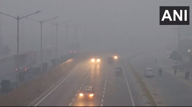 #WATCH | Uttar Pradesh | Low visibility on roads in Mathura city due to dense fog during cold weather