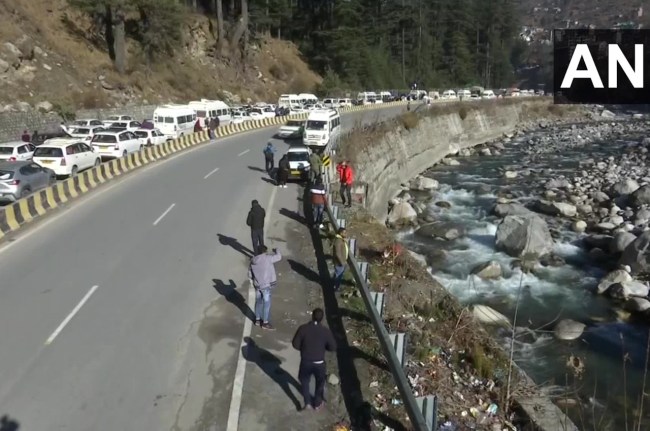 Himachal Pradesh | Massive traffic jam in Manali as people throng to hilly areas to celebrate #NewYear2023 pic.twitter.com/D9J3mPo0f7