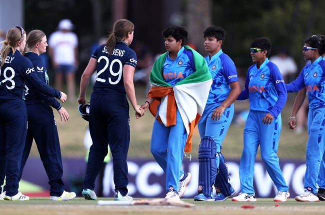 рдмрддрд╛ рджреЗрдВ рдлрд╛рдЗрдирд▓ рдореЗрдВ рдЯреАрдо рдЗрдВрдбрд┐рдпрд╛ рдиреЗ рдЗрдВрдЧреНрд▓реИрдВрдб рдХреЛ 8 рд╡рд┐рдХреЗрдЯ рд╕реЗ рд░реМрдВрджрдХрд░ рд╡рд░реНрд▓реНрдб рдХрдк рдкрд░ рдХрдмреНрдЬрд╛ рдХрд┐рдпрд╛ рд╣реИред рдЦрд┐рддрд╛рдмреА рдореБрдХрд╛рдмрд▓рд╛ рд╕рд╛рдЙрде рдЕрдлреНрд░реАрдХрд╛ рдХреЗ рдкреЛрдЪреЗрдлрд╕реНрдЯреНрд░реВрдо рд╕реНрдерд┐рдд рд╕реЗрдирд╡реЗрд╕ рдкрд╛рд░реНрдХ (Senwes Park, Potchefstroom) рдореЗрдВ рдЦреЗрд▓рд╛ рдЧрдпрд╛ред рдЗрд╕ рдореИрдЪ рдореЗрдВ рднрд╛рд░рдд рдиреЗ рдЯреЙрд╕ рдЬреАрддрдХрд░ рдкрд╣рд▓реЗ рдЧреЗрдВрджрдмрд╛рдЬреА рдХрд╛ рдлреИрд╕рд▓рд╛ рдХрд┐рдпрд╛ред рднрд╛рд░рддреАрдп рдХрдкреНрддрд╛рди рд╢реЗрдлрд╛рд▓реА рд╡рд░реНрдорд╛ рдХрд╛ рдлреИрд╕рд▓рд╛ рд╕рд╣реА рд╕рд╛рдмрд┐рдд рд╣реБрдЖ рдФрд░ рдЯреАрдо рдЗрдВрдбрд┐рдпрд╛ рдиреЗ рдЗрдВрдЧреНрд▓реИрдВрдб рдХреЛ 17.1 рдУрд╡рд░ рдореЗрдВ рдорд╣рдЬ 68 рд░рди рдкрд░ рдСрд▓рдЖрдЙрдЯ рдХрд░ рджрд┐рдпрд╛ред