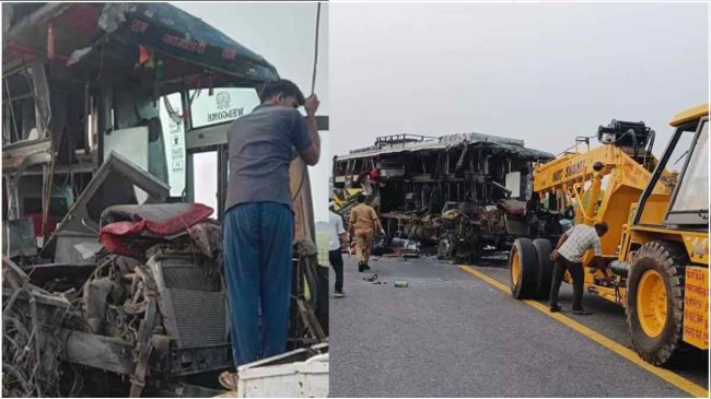 Unnao Bus Accident at Lucknow-Agra Expressway#unnao #UPNews pic.twitter.com/WzFxrHXAqQ
