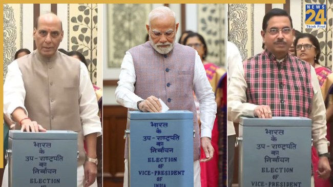 Vice President Election 2025: उपराष्ट्रपति चुनाव 2025 के लिए संसद में मतदान हुआ, जिसमें सबसे पहले प्रधानमंत्री मोदी ने वोट डाला और उसके बाद वे पंजाब के बाढ़ग्रस्त इलाकों के दौरे के लिए रवाना हो गए। उनके बाद एक-एक करके NDA के सभी सांसदों ने वोट डाला। मतदान करने से पहले NDA के सभी सांसद प्रधानमंत्री मोदी से मिले।
