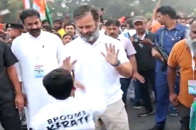 Rahul Gandhi Video: कांग्रेस नेता राहुल गांधी की भारत जोड़ी यात्रा से एक और दमदार वीडियो साझा किया गया है। कांग्रेस पार्टी ने गुरुवार को एक वीडियो साझा किया। इसमें पार्टी नेता को एक बच्चे के साथ दिख रहे हैं। वीडियो में बच्चा कराटे किंग की तरह राहुल गांधी के हाथों पर पंच मारता नजर आ रहा है। 23 सेकंड के वीडियो क्लिप में राहुल गांधी बाद में बच्चे को सही तकनीकों का इस्तेमाल करना सिखा रहे हैं। बता दें कि गांधी एक ब्लैक बेल्ट हैं।