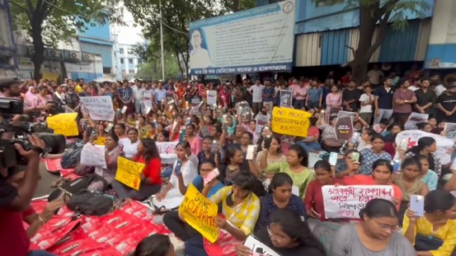 Students at RG Kar Medical College and Hospital & Vivekananda Institute of Medical Sciences protest against the shocking case of alleged brutal rape and murder of a doctor and post-graduate medical student at RG Kar Medical College & Hospital.