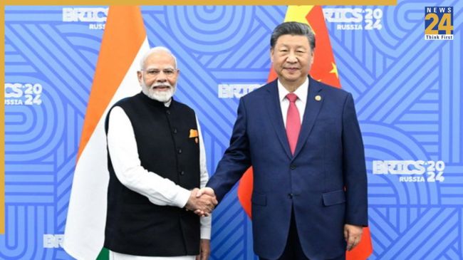 -2024 में रूस के कजान में ब्रिक्स बैठक के दौरान प्रधानमंत्री नरेंद्र मोदी और शी जिनपिंग की मुलाकात हुई
