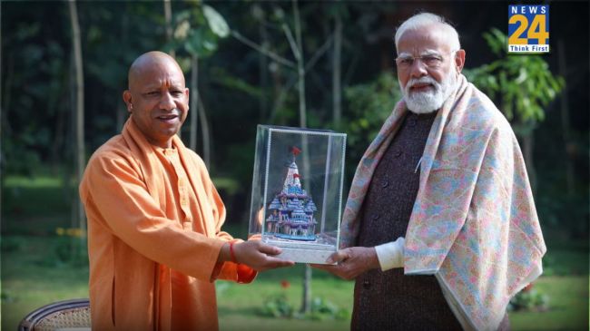 हिंदी न्यूज़/Information/काशी की गुलाबी मीनाकारी का विश्व सम्मान: सीएम योगी ने पीएम मोदी को भेंट की श्रीराम मंदिर की स्वर्ण रजत अनुकृति
