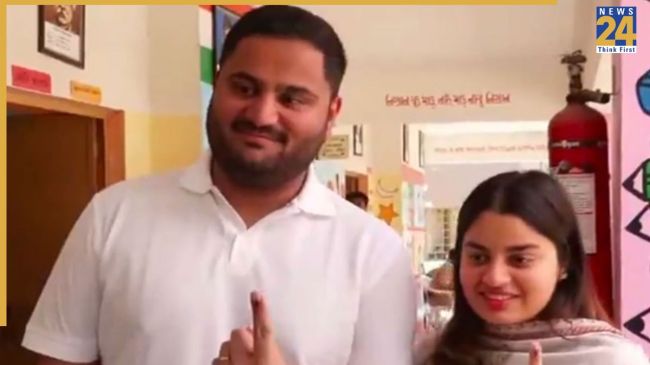 #WATCH | Gujarat: Adani Airport Holdings Limited (AAHL) Director Jeet Adani and his wife Diva Shah cast their vote at a polling station in Ahmedabad. pic.twitter.com/5xZUpzfULM