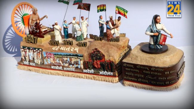 ‘वंदे मातरम’ एक मंत्र है, जो हर भारतीय में स्वदेशी, स्वावलंबन और स्वतंत्रता की अलख जगाता है. ‘वंदे मातरम’ गीत की 150वीं वर्षगांठ के उपलक्ष्य में, इस विषय के प्रतिघोष के रूप में ‘वंदे मातरम’ शब्द की पृष्ठभूमि से ही शुरू हुई भारतीय राष्ट्रीय ध्वज के बनने की यात्रा, उसका बदलता स्वरूप और इतिहास की रोचक प्रस्तुति 77वें गणतंत्र दिवस पर्व में गुजरात की झांकी का प्रमुख आकर्षण बना.