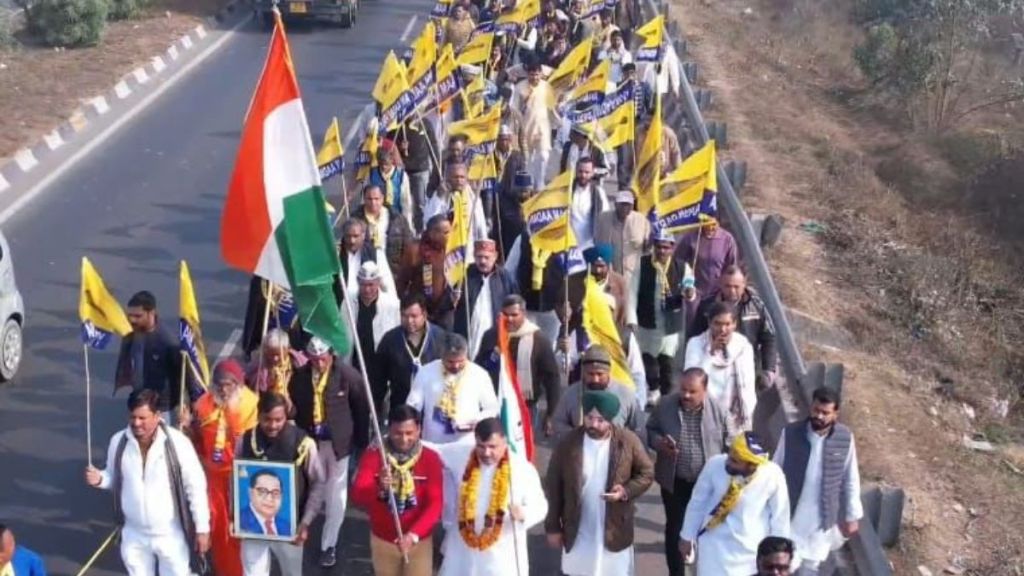 рдЖрдо рдЖрджрдореА рдкрд╛рд░реНрдЯреА рдХреА тАШрд╡реЛрдЯ рдмрдЪрд╛рдУ, рд╕рдВрд╡рд┐рдзрд╛рди рдмрдЪрд╛рдУтАЩ рдкрджрдпрд╛рддреНрд░рд╛ рдХреЗ рджреВрд╕рд░реЗ рджрд┐рди рд╕реЛрдорд╡рд╛рд░ рдХреЛ рд╕рдВрдШрд░реНрд╖ рдФрд░ рдЬрдирд╕рдорд░реНрдерди рдФрд░ рдордЬрдмреВрдд рд╣реЛрддрд╛ рджрд┐рдЦрд╛. рдЖрдо рдЖрджрдореА рдкрд╛рд░реНрдЯреА рдХреЗ рд╡рд░рд┐рд╖реНрда рдиреЗрддрд╛, рдЙрддреНрддрд░ рдкреНрд░рджреЗрд╢ рдкреНрд░рднрд╛рд░реА рд╡ рд╕рд╛рдВрд╕рдж рд╕рдВрдЬрдп рд╕рд┐рдВрд╣ рдХреЗ рдиреЗрддреГрддреНрд╡ рдореЗрдВ 6 рджрд┐рд╡рд╕реАрдп рдкрджрдпрд╛рддреНрд░рд╛ рд╕реЛрдорд╡рд╛рд░ рд╕реБрдмрд╣ рдЬреЗ.рдЖрд░. рдкреИрд▓реЗрд╕, рдЕрдВрдмреЗрдбрдХрд░ рдкрд╛рд░реНрдХ рдХреЗ рдкрд╛рд╕, рд╕реАрдЖрд░рдкреАрдПрдл рдХреЗ рд╕рд╛рдордиреЗ, рдореБрд░рд╛рджрд╛рдмрд╛рдж рд░реЛрдб, рд░рд╛рдордкреБрд░ рд╕реЗ рд╢реБрд░реВ рд╣реБрдИ. рдкрджрдпрд╛рддреНрд░рд╛ рдЬреИрд╕реЗ рд╣реА рдореБрд░рд╛рджрд╛рдмрд╛рдж рдХреЗ рджрд▓рдкрддрдкреБрд░ рдкрд╣реБрдВрдЪреА, рдореБрд░рд╛рджрд╛рдмрд╛рдж рдХреА рдЬрдирддрд╛ рдиреЗ рд╕рдВрдЬрдп рд╕рд┐рдВрд╣ рдХрд╛ рдЬреЛрд░рджрд╛рд░ рд╕реНрд╡рд╛рдЧрдд рдХрд┐рдпрд╛, рдореБрд░рд╛рджрд╛рдмрд╛рдж рдХреА рд╕реАрдорд╛ рдореЗрдВ рдкреНрд░рд╡реЗрд╢ рдХрд░рддреЗ рд╣реА рдЬрд╣рд╛рдВ рд╕реЗ рднреА рдкрджрдпрд╛рддреНрд░рд╛ рдЧреБрдЬрд░реА, рдЙрд╕реЗ рдЬрдирддрд╛ рдХрд╛ рдЕрдкрд╛рд░ рдЬрдирд╕рдорд░реНрдерди рдорд┐рд▓рд╛. рдпрд╣ рдкрджрдпрд╛рддреНрд░рд╛ рдПрд╕рдЖрдИрдЖрд░ рдХреЗ рдирд╛рдо рдкрд░ рднрд╛рдЬрдкрд╛ рджреНрд╡рд╛рд░рд╛ рдЙрддреНрддрд░ рдкреНрд░рджреЗрд╢ рдореЗрдВ рд╕рдмрд╕реЗ рдмрдбрд╝реА рд╡реЛрдЯреЛрдВ рдХреА рдЪреЛрд░реА, рдорддрджрд╛рддрд╛ рд╕реВрдЪреА рд╕реЗ рдирд╛рдо рдХрд╛рдЯрдиреЗ, рдЧрд░реАрдм-рджрд▓рд┐рдд-рдкрд┐рдЫрдбрд╝реЗ-рдЕрд▓реНрдкрд╕рдВрдЦреНрдпрдХреЛрдВ рдХреЛ рд╡реЛрдЯ рдХреЗ рдЕрдзрд┐рдХрд╛рд░ рд╕реЗ рд╡рдВрдЪрд┐рдд рдХрд░рдиреЗ рдФрд░ рд╕рдВрд╡рд┐рдзрд╛рди рдХреЛ рдХрдордЬреЛрд░ рдХрд░рдиреЗ рдХреА рдХреЛрд╢рд┐рд╢реЛрдВ рдХреЗ рдЦрд┐рд▓рд╛рдл рдЬрдирддрд╛ рдХреЛ рд╕рдЪреЗрдд рдХрд░рдиреЗ рдХрд╛ рдЕрднрд┐рдпрд╛рди рд╣реИ.