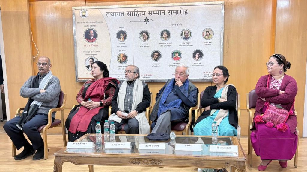 24 рдЬрдирд╡рд░реА 2026 рдХреЛ рдирдИ рджрд┐рд▓реНрд▓реА рдХреЗ рд╕рд╛рд╣рд┐рддреНрдп рдЕрдХрд╛рджреЗрдореА рд╕рднрд╛рдЧрд╛рд░ рдореЗрдВ рдЖрдпреЛрдЬрд┐рдд рдЧрд░рд┐рдорд╛рдордп рд╕рдорд╛рд░реЛрд╣ рдореЗрдВ рдХреЗрд░рд▓ рдХреЗ рд╡рд░рд┐рд╖реНрда рд╣рд┐рдиреНрджреА рд╕рд╛рд╣рд┐рддреНрдпрдХрд╛рд░ рдП. рдЕрд░рд╡рд┐рдВрджрд╛рдХреНрд╖рди рдФрд░ рдЕрд░реБрдгрд╛рдЪрд▓ рдкреНрд░рджреЗрд╢ рдХреА рдпреБрд╡рд╛ рдХрд╡рдпрд┐рддреНрд░реА рдЬрдореБрдирд╛ рдмреАрдиреА рдХреЛ тАШрддрдерд╛рдЧрдд рд╕рд╛рд╣рд┐рддреНрдп рд╕рдореНрдорд╛рдитАЩ рд╕реЗ рд╕рдореНрдорд╛рдирд┐рдд рдХрд┐рдпрд╛ рдЧрдпрд╛. рдХрд╛рд░реНрдпрдХреНрд░рдо рдХрд╛ рд╢реБрднрд╛рд░рдВрдн рдорд╣рд╛рдХрд╡рд┐ рдирд┐рд░рд╛рд▓рд╛ рдХреА рд╕рд░рд╕реНрд╡рддреА рд╡рдВрджрдирд╛ рдкрд░ рдЖрдзрд╛рд░рд┐рдд рдХрдердХ рдкреНрд░рд╕реНрддреБрддрд┐ рд╕реЗ рд╣реБрдЖ. рддрдерд╛рдЧрдд рдЯреНрд░рд╕реНрдЯ рдХреЗ рд╕рдВрд░рдХреНрд╖рдХ рдбреЙ. рдПрди. рдкреА. рд╕рд┐рдВрд╣ (рдкреВрд░реНрд╡ рдЖрдИрдПрдПрд╕) рдиреЗ рдЯреНрд░рд╕реНрдЯ рдХреА рдкрд░рд┐рдХрд▓реНрдкрдирд╛, рд╕рд╛рдорд╛рдЬрд┐рдХ-рд╢реИрдХреНрд╖рдгрд┐рдХ рдХрд╛рд░реНрдпреЛрдВ рдФрд░ рдЙрддреНрддрд░-рджрдХреНрд╖рд┐рдг рднрд╛рд░рдд рдХреЗ рдмреАрдЪ рднрд╛рд╖рд╛-рд╕рдВрд╕реНрдХреГрддрд┐ рд╕рдВрд╡рд╛рдж рдХреЗ рд▓рдХреНрд╖реНрдп рдХреЛ рд░реЗрдЦрд╛рдВрдХрд┐рдд рдХрд┐рдпрд╛. рдпрд╣ рд╕рдореНрдорд╛рди рдкреНрд░рдЦреНрдпрд╛рдд рд╕рд╛рд╣рд┐рддреНрдпрдХрд╛рд░ рд░рд╛рдорджрд░рд╢ рдорд┐рд╢реНрд░ рдХреА рд╕реНрдореГрддрд┐ рдореЗрдВ рдкреНрд░рджрд╛рди рдХрд┐рдпрд╛ рдЧрдпрд╛.